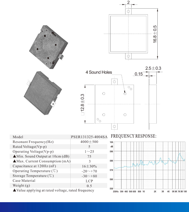 SMD Buzzer Diameter 13mm Frequency 4KHz PSE1325+4005SA